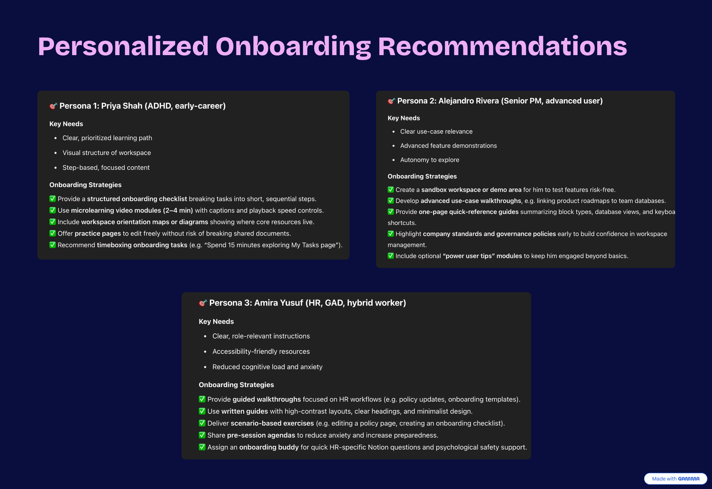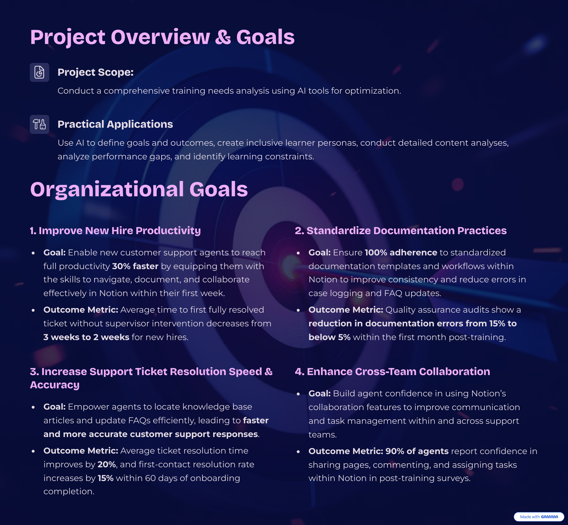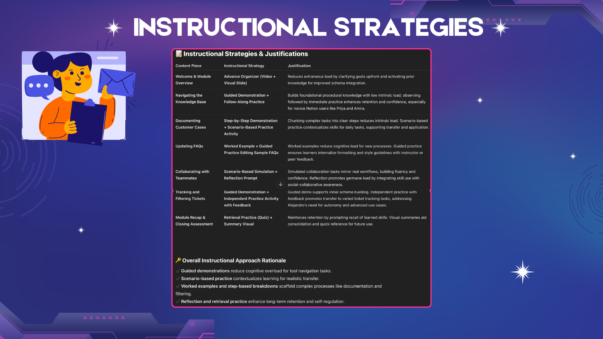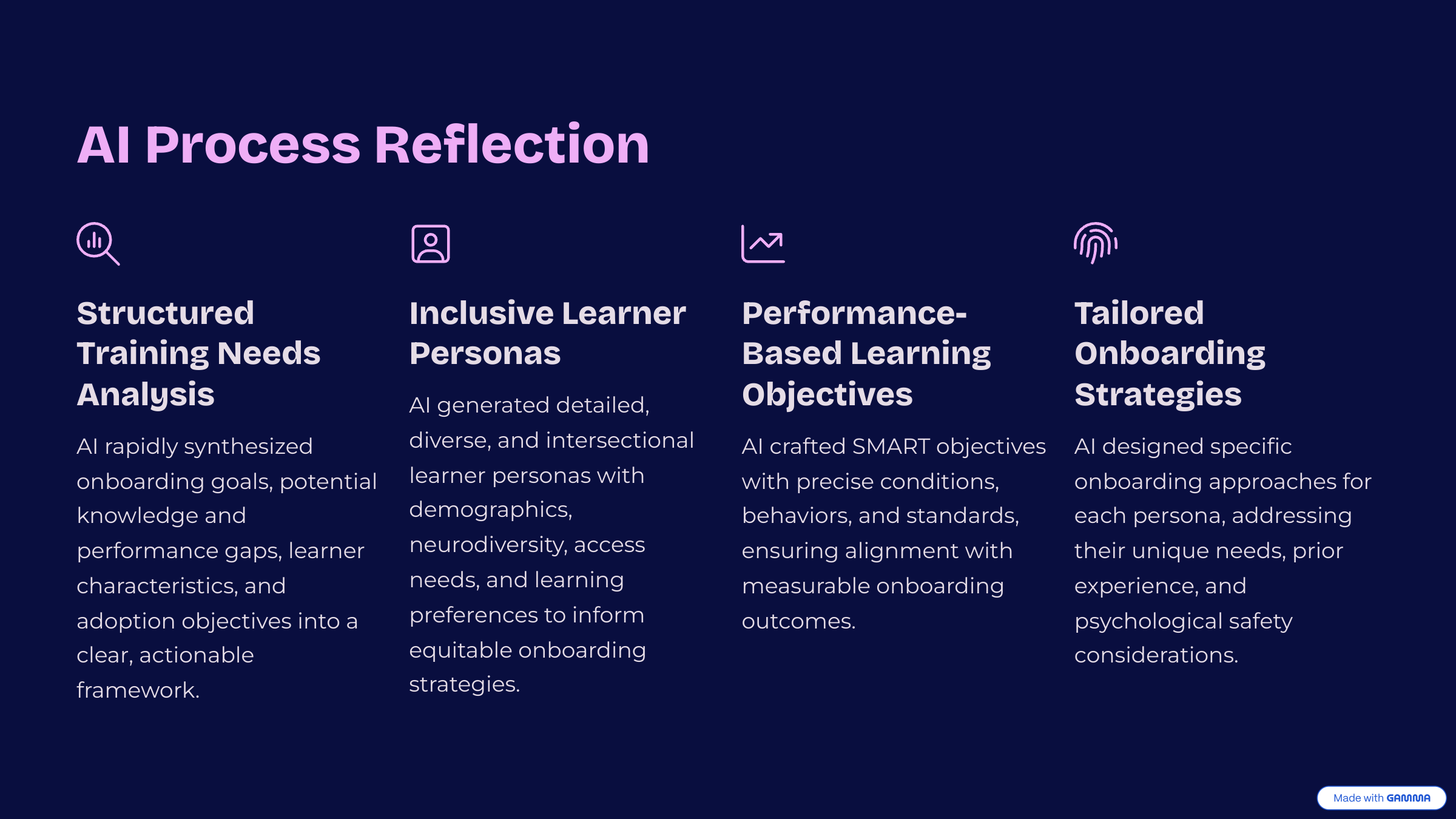 Integrate AI into the design process for an onboarding module grounded in instructional theory and performance-based objectives.