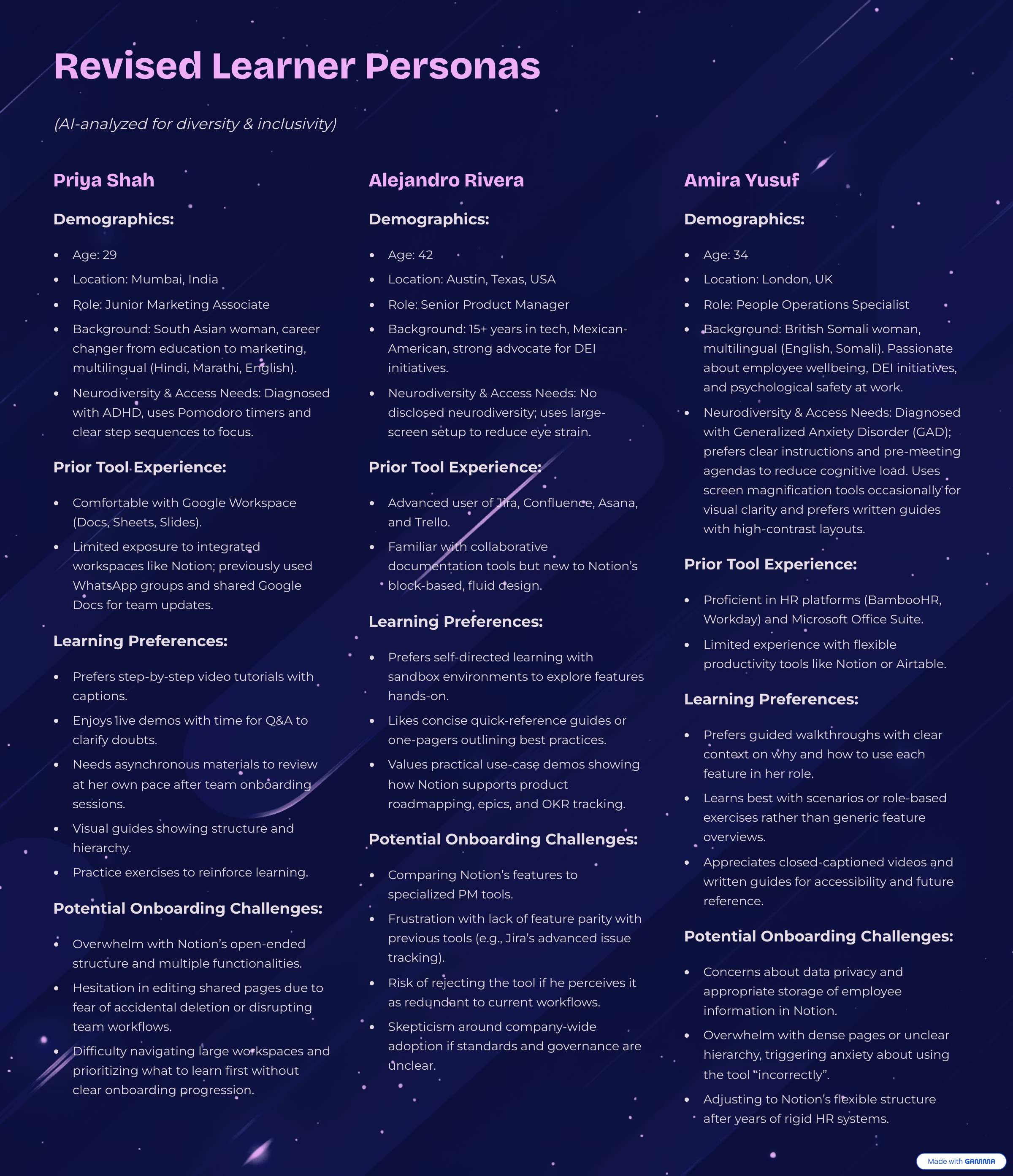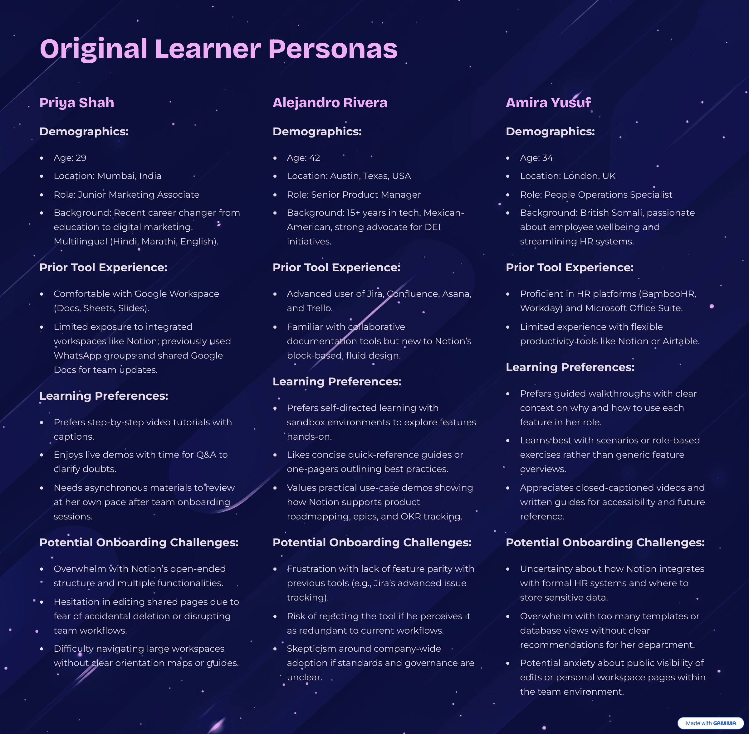 Learner Personas
