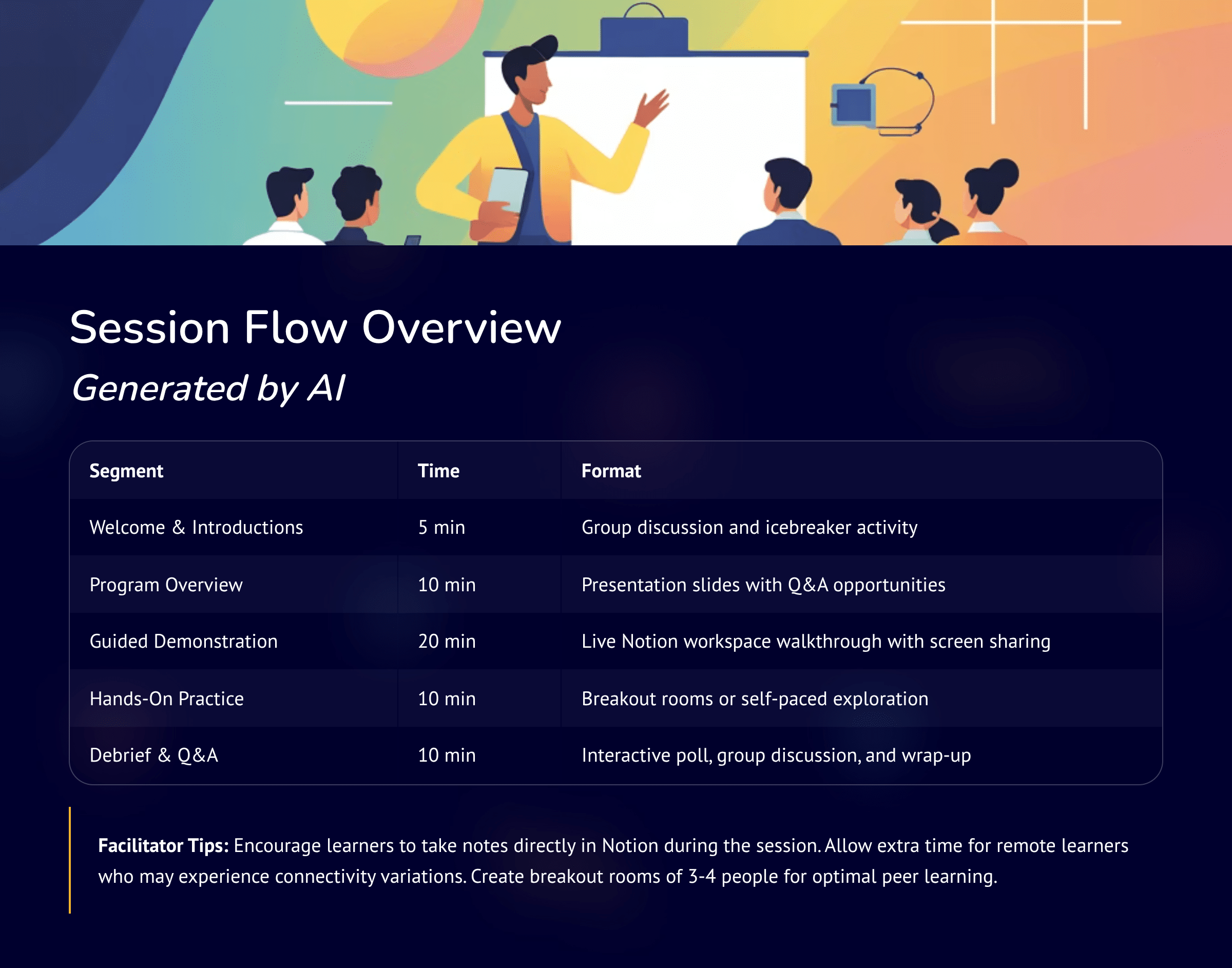 Leverage all project data in the AI conversation and public data about the product to generate guides for both facilitator and learner.